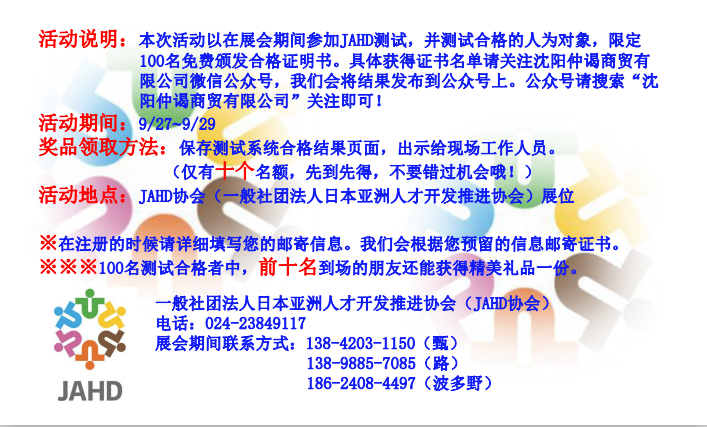 欢迎大家到“一般社团法人日本亚洲人才开发推进协会”展位参观~