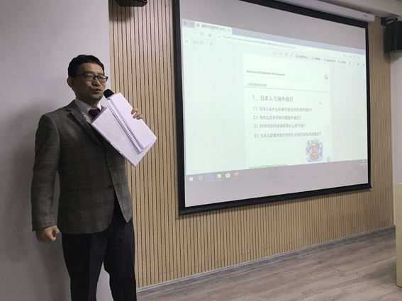 本次讲座主要面向旅游外语专业的学生,会议开始由马主任对JAHD协会进行了简单的介绍,然后JAHD协会理事长金子格为说明会致辞。讲座内容包括JAHD协会活动介绍、JAHD测试介绍、旅游商务礼仪的重要性、求职面试技巧等内容,波多野讲师通过幽默的案例为大家讲解了身为导游其自身掌握并传播商务礼仪的重要性,讲座全程,由JAHD协会焦路担任口译工作。在讲座的最后,所有出席讲座的人使用手机打开JAHD网站进行体验。